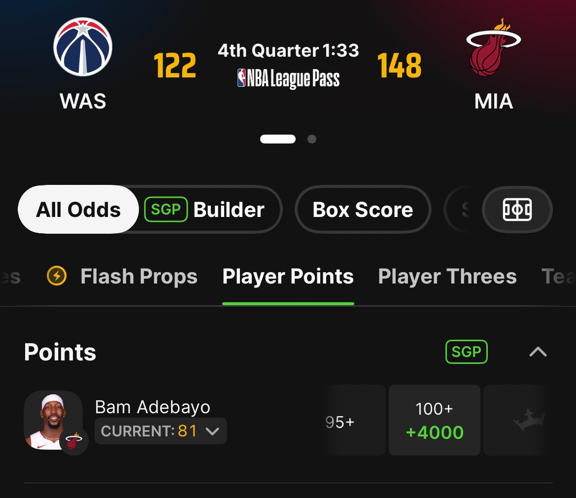 Draftkings had a live odds tonight for Bam Adebayo to get 19 more points in 1.5 minutes