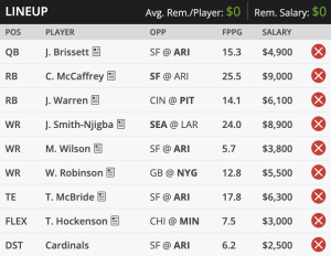 November 16, 2025 By FD-GURU DK Cash 1pm, NFL SEASON Cash Pick DK, Premium Pass DraftKings, Premium Pass FanDuel+DraftKings No Comments NFL Week 11 DK 1pm only Cash